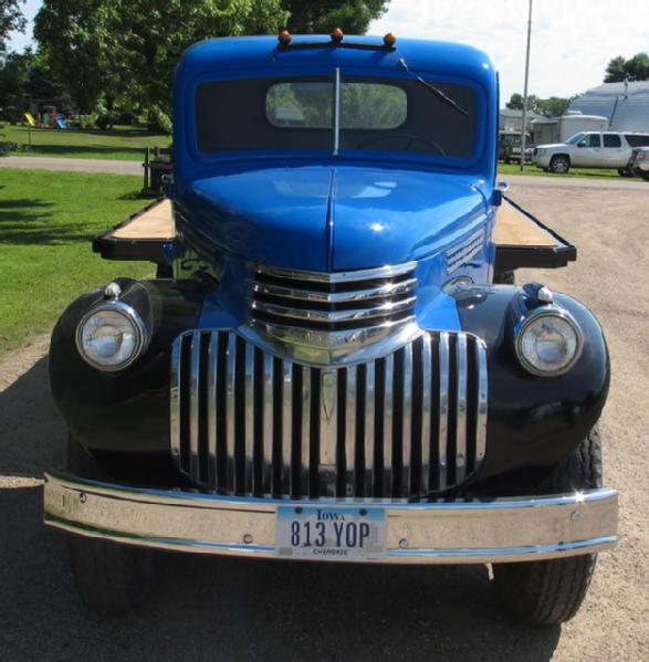 216 cu, original motor & trans, new paint, glass, & Cloth wiring. Custom Flatbed, chrome bumper, good tires, runs great