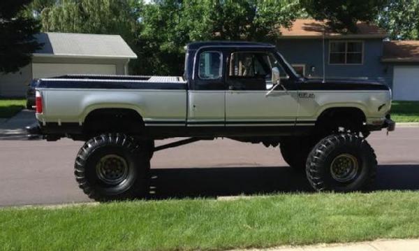 360 V8, auto, 91K miles, Aluminum Edelbrock intake, Edelbrock AFB750 Carb, mild aftermarket cam, long tube headers w/ 5" underbody straight pipe. Cab & Box are in good condition, cab has a couple of dings and missing some chrome trim. Box is rhino lined, Custom front bumper w/ Warn #6274 Winch. Interior has some wear, Lift Kit, 18.x5x44x16.5 Cepek Mud Country Tires