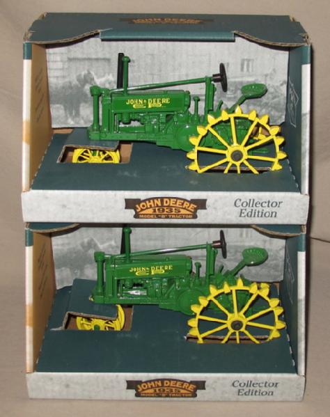 Sunday Farm Toy Auction 15 Ohio Street, Wakonda, SD 57073 Nearly 400 lots of Good, Clean Farm Toys! Catalog | Terms of Auction | Print Catalog Catalog | Terms Back to Catalog #795 – (2) JD Unstyled B's on full steel both NIB, 2x the money More Details both NIB, 2x the money Location: 15 Ohio Street, Wakonda SD, 57073 Sold High Bid: $15.00 bidding history Auction Type: Quantity x Price Quantity: 2 Back to Catalog