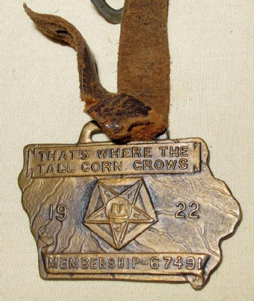 looks to be a fraternal fob, but in the shape of Iowa, excellent