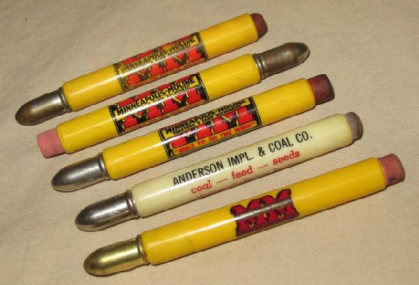 Eisma Online Only Farm Toy Auction 15 Ohio Street, Wakonda, SD 57073 Large & Clean Collection of mostly John Deere Toys from the Bob & Mary Eisma Collection of Ireton, Iowa. Catalog | Terms of Auction | Print Catalog Catalog | Terms Back to Catalog #1152 – (5) MM Bullet Pencils--most with logos 5x the money More Details 5x the money Location: 15 Ohio Street, Wakonda SD, 57073 Sold High Bid: $15.00 bidding history Auction Type: Quantity x Price Quantity: 5 Back to Catalog
