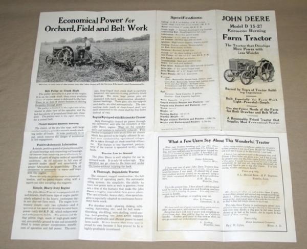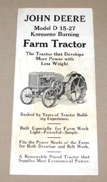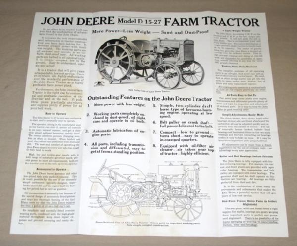 very unusual piece calling the tractor "D 15-27", unfolds into a poster, has some wear, but very scarce