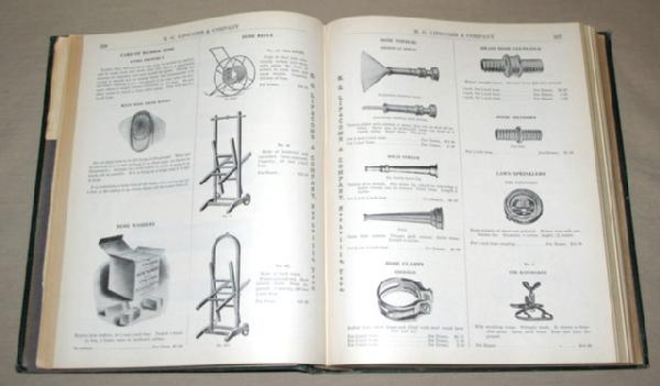 about 2" thick, excellent condition, shows early tools, hardware, garden tools, implements and more, nice piece