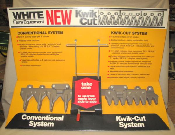 Very unique mechanical sign, move lever side to side and sickles move, small tear in the cardboard by the lever, otherwise near mint. 34" wide, 24" tall, comes with the original box, neat piece for the Oliver-Minneapolis-Moline-white Collector!