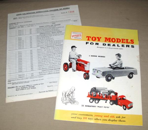 Very clean with light wear, 20 pages, shows the SCOUT pedal Car, 560 Pedal Tractor, Several Trucks including the small diecast Scouts, Metro-Mite banks, Eska Tru-Scale Semi & Service Trucks, plus 460, 560, 340, 240 & implements! What a piece for the IH toy collector!