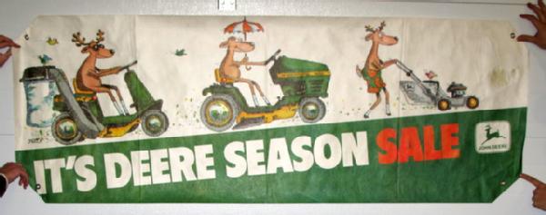 neat banner, 1980's era, made from a heavy paper/canvas, has some wear, but looks unique