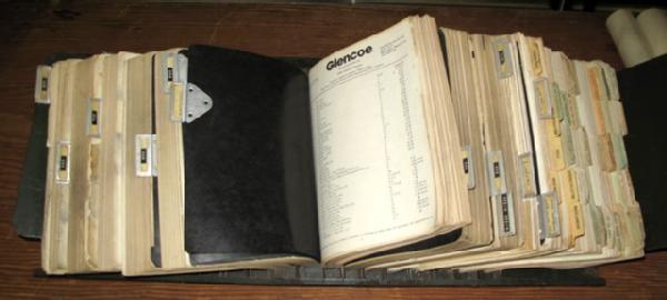 Full and heavy, full of 1970's era Combine Manuals and some implement manuals along with some short line stuff, has some wear, very heavy
