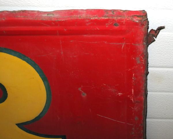 8' long, 2' tall, shows some wear and has some rust on the right side, hard to find sign