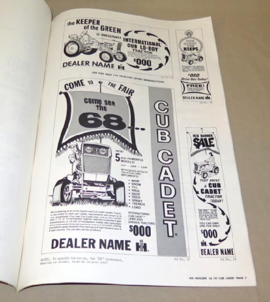 new in the plastic mailing sleeve, 19"x12", about 20 pages, great piece full of Cub Cadet advertisements for the dealer to use in local newspapers/magazines