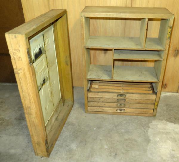 sign is good original, case has no finish left on the wood, needs hinges too, this cabinet would restore up pretty nice and fairly easily