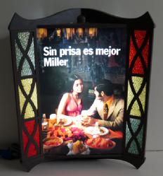 15" can hangs from the ceiling with a twirling ribbon making it look like the beer is pouring, never used, nice piece, did not test
