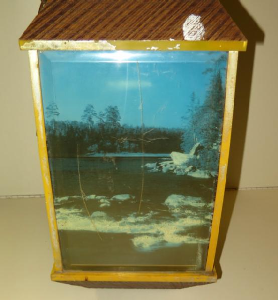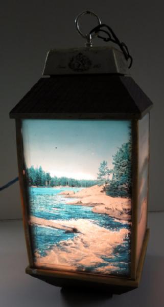 20"x9"x9", lights up, missing the cover on the bottom, gold wash is nearly completely worn off and has quite a bit of general wear