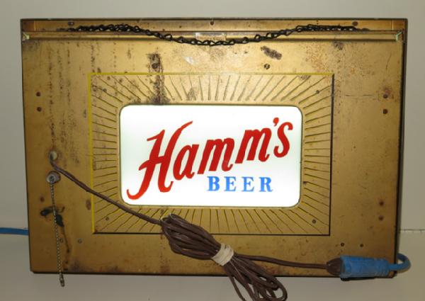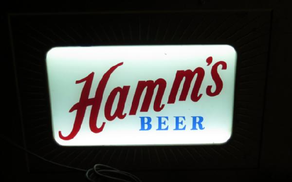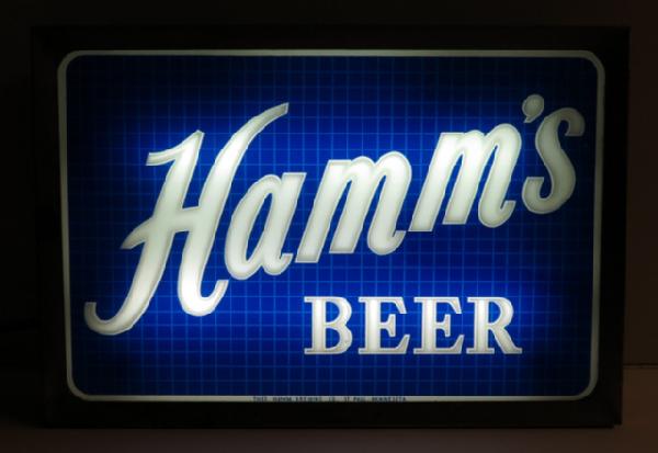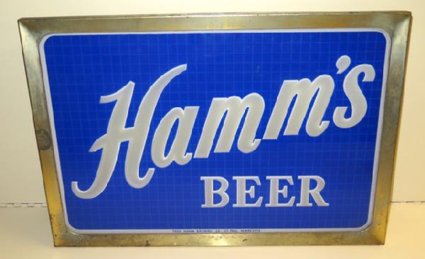 21"x14", lights up to a beautiful blue color, frame has a little tarnishing, also has the glass panel on the reverse side, another classic Hamm's Sign