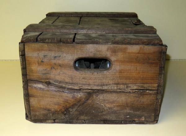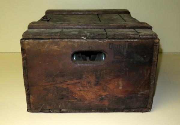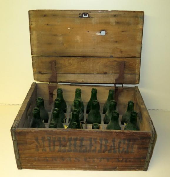 Early Crate, normal wear, bottle inside are correct, but only traces of the original paper labels remain, sells as a set for one money