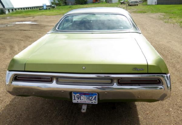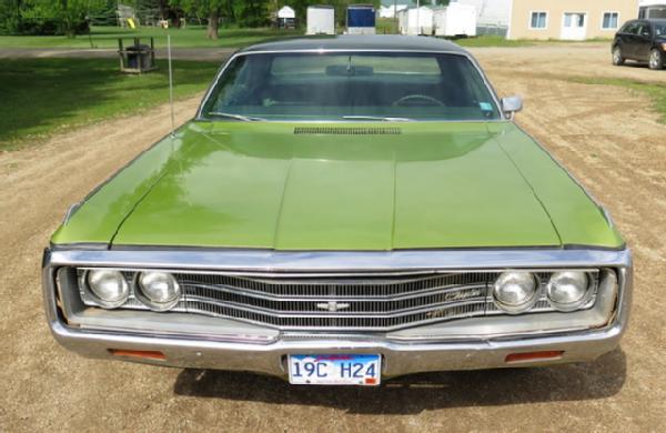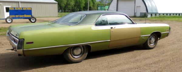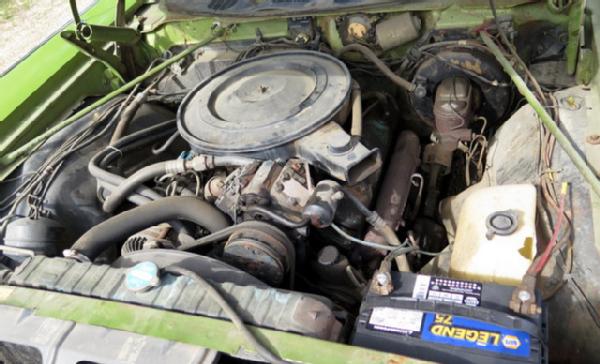 383 2bbl, auto, 125K act miles, may have a few oil leaks, but runs very well. Rust on left rear quarter, right side passenger door replaced and needs to be painted, tires are bad, good glass minus one chip in windshield, fair paint. Interior is average for age, door arm rest replaced, back seat very good; Seller bought this car new--1 owner