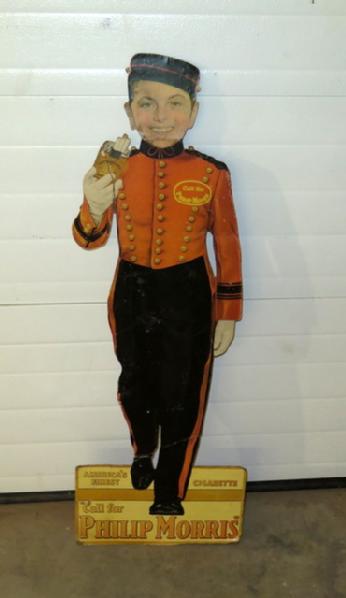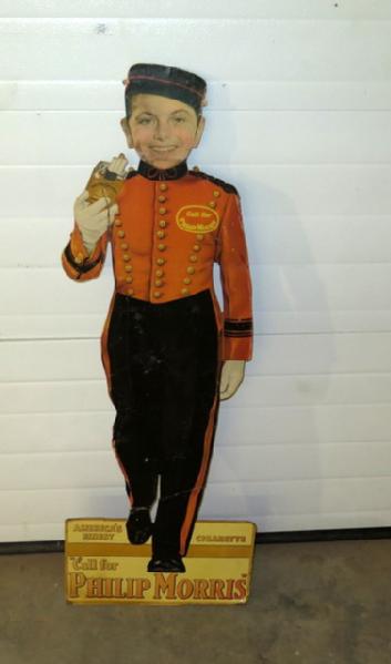 about 44" tall, faded and has some repairs by his right hand and below the knees, not the best condition, but a hard piece to find