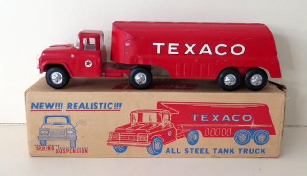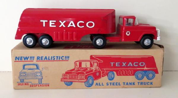 later version of the Texaco Tanker, toy is very nice, rates 95% or better, box is missing one end flap, otherwise a good box too, no mirrors