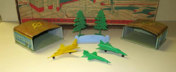 Box with a few small buildings and a few small parts, box has quite abit of damage