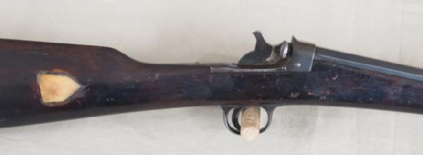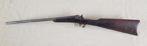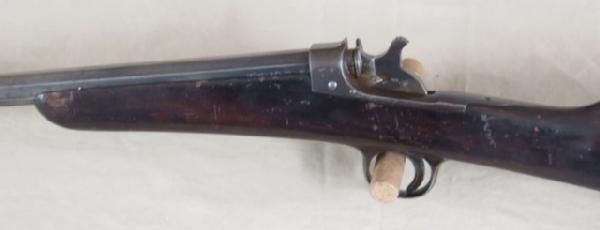 Oct BBL, rolling block, has a piece of bone incised into the stock, unique antique .22