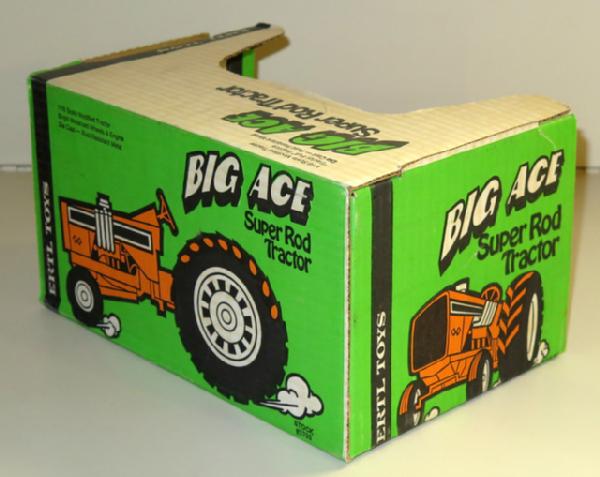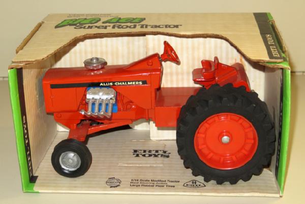 restored tractor with custom wheels added, toy looks good, pretty nice original box, box rates 90% condition
