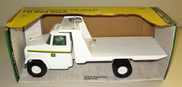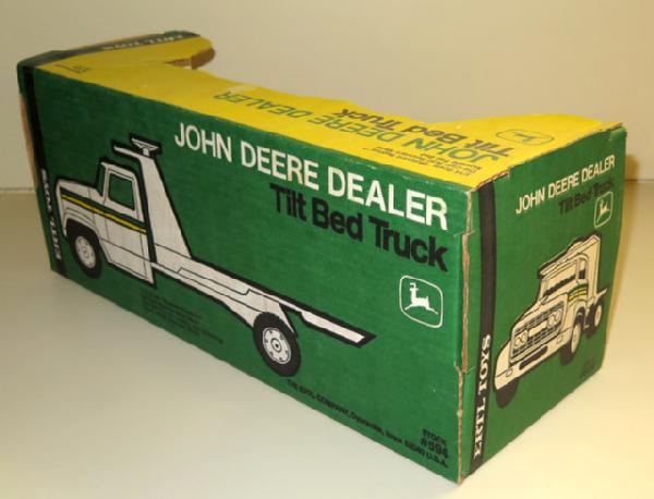 NIB, toy paint looks to be near mint, but cab insert has been changed out with one with a driver that has been painted to look like a JD dealer, looks good