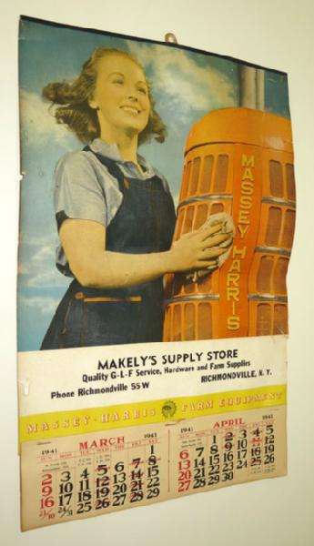 missing 1 page of months, calendar is faded and has some wear, top metal band intact, 18"x12"