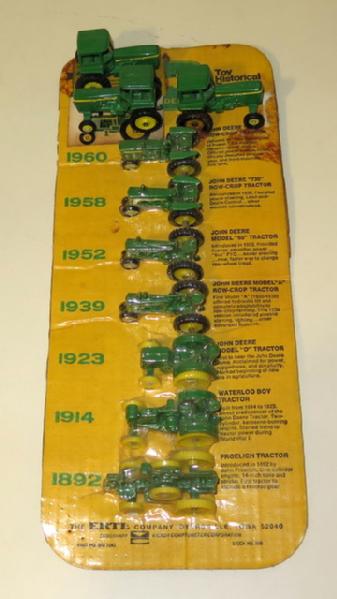 The original 7 are factory sealed to the card, there are 3 4430 tractors that are wired to the top and rust-stained the cards, as-is