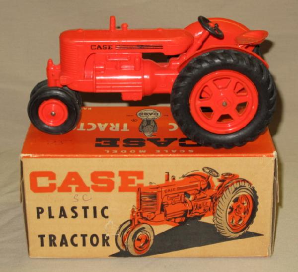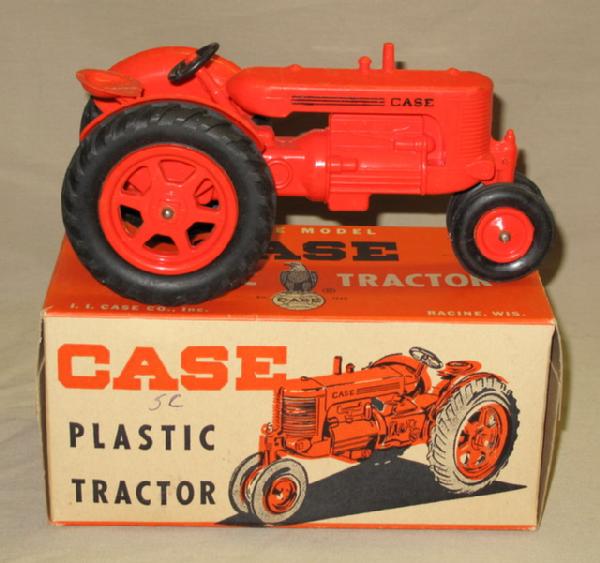 1950's plastic toy, has some light scuffs/scratches. Box is nice & square, some tape on the tabs on the end and a few small puncture holes