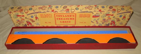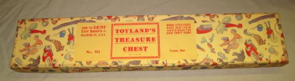 Near mint box for a 1930's DENT Train Set, 24.5" long, nice piece if you have the toy!