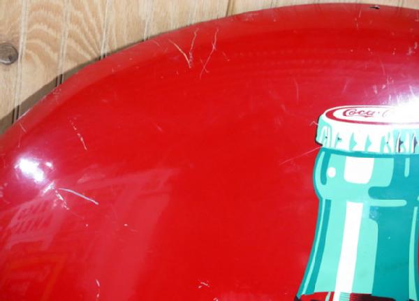 36" diam, great color and shine, has some scuffs and scratches, rates 8.25 condition