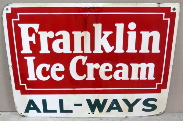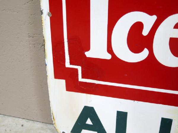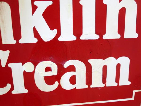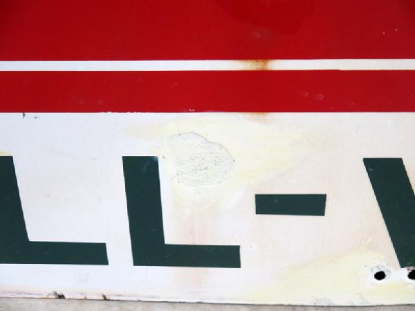 has some large chips in the sign that have been touched up, discoloration to the white, doesn't look bad from a distance, but has condition issues, 40"x30"