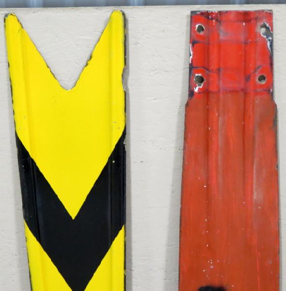 each about 4' long, Porcelain, red one has been painted, yellow one is pretty good, 2x the money