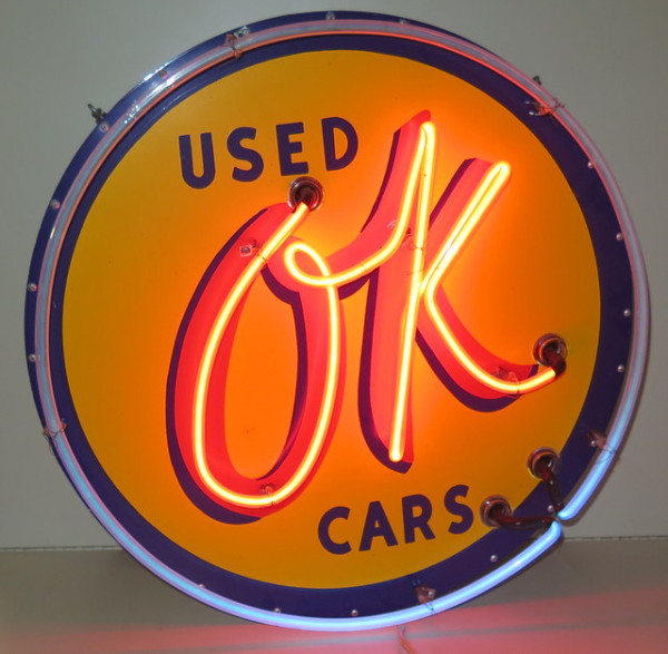 newer tin sign with neon, looks great when lit, 26" diam; neon is a little dim, but works;