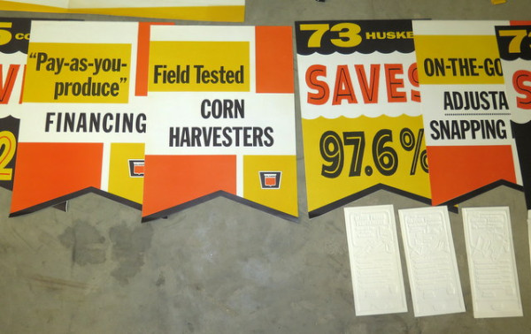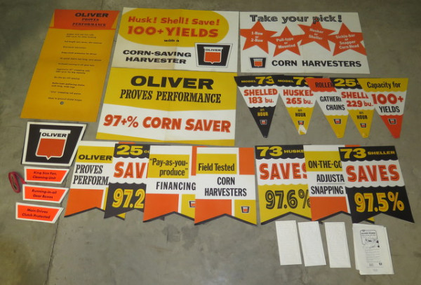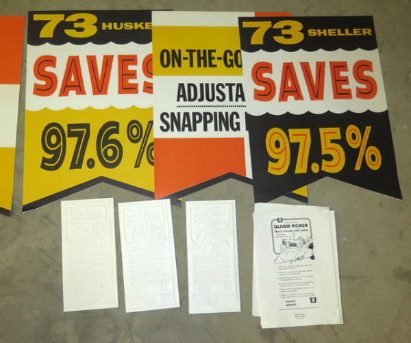 Wow, what a find, includes 3 3'x2' posters; a 3'x20" cardboard poster; a NOS Paper pennant banner, a stack of decals to attach to the equipment on the showroom floor, plus radio scrips and newspaper slicks, all in the original shipping box postmarked 1961; A true museum piece, if you are trying to replicate a 1960's dealership museum, this is a "must have" for your collection!