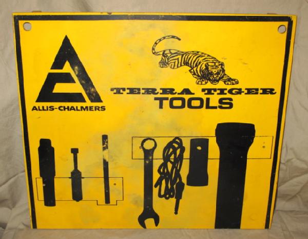 measures 16"x14", has the holes to hold the rack that held the specialty tools for the Terra Tiger, has some wear, rare piece