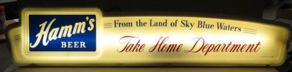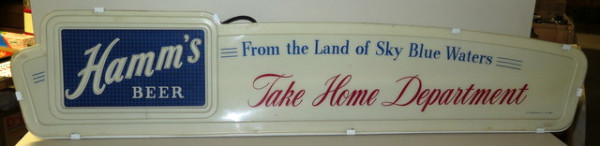 harder Hamm's sign to find, about 4'x1', has a crack in the logo, otherwise works good