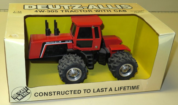 Hagen Online Only Farm Toy Auction 15 Ohio Street, Wakonda, SD 57073 High Quality 1/64th & 1/32nd Scale Farm Toys. Includes Gold, Colored Chrome, & Muddies! Lots of Big Buds, Versatile, John Deere & more. Rob Hagen of Lincoln, NE--Owner Catalog | Terms of Auction | Print Catalog Catalog | Terms Back to Catalog #140 – Deutz-Allis 4W-305 w/ Cab & Chrome Rims 1/32nd Scale NIB More Details NIB Location: 15 Ohio Street, Wakonda SD, 57073 High Bid: $35.00 – cuda480 bidding history Bidding has closed on this lot Back to Catalog