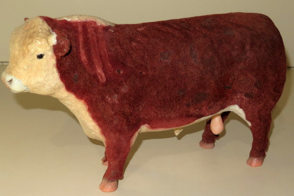 size of a Breyer, has been flocked, has some spots where the flocking is coming off, another hard to find piece