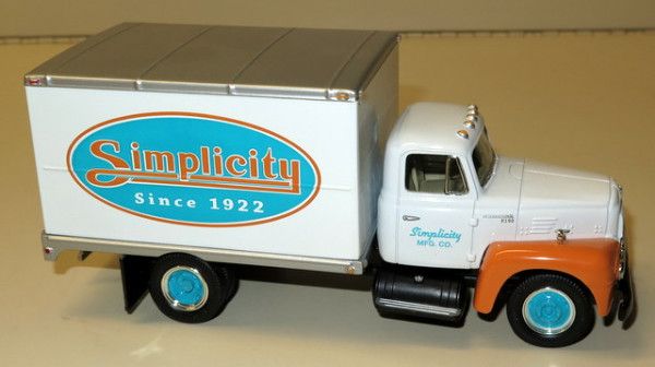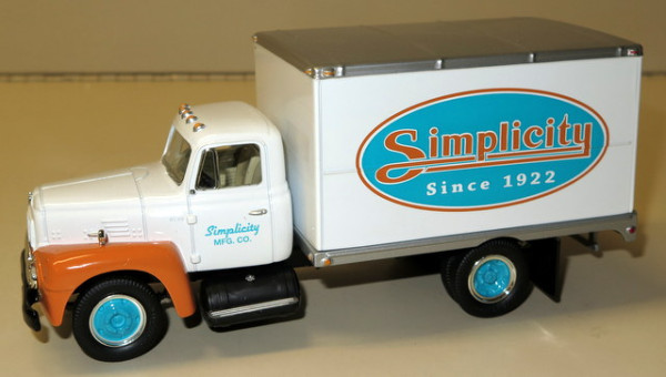 neat truck with chains on end gate and full of crates, NIB, 1/34th scale