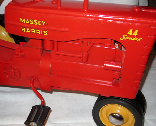 Standing back, you would never guess this is wood! Built by Vernon Warnke of Nebraska. Same size as a real pedal and works! Great & unique piece for the Pedal Tractor or Massey Collector!