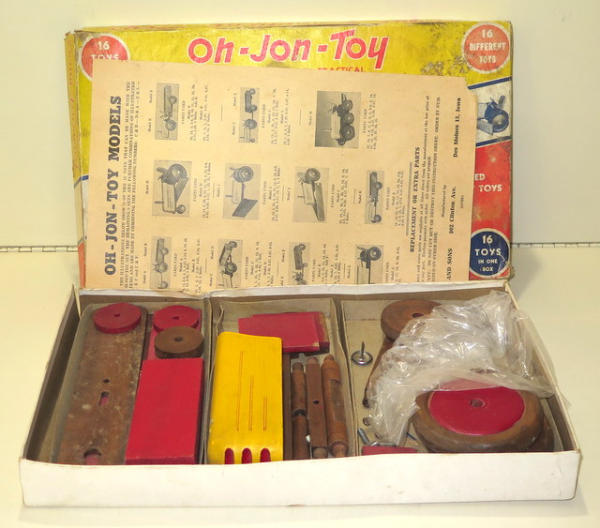 Box has water damage and wear, Toy is made of wood, don't know if complete, unique local piece