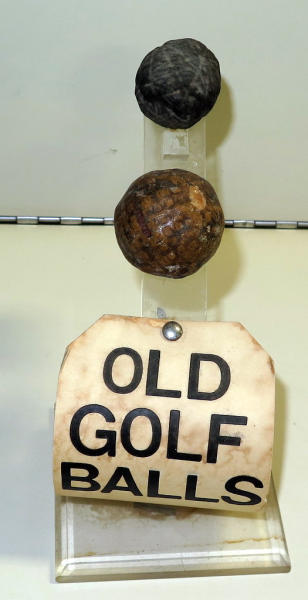bottom ball is stamped Spalding, not sure if the top ball is a golf ball or not