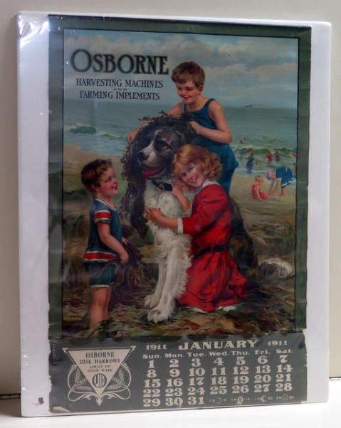 20"x13", has top metal band, some rough edges, but color is nice and full calendar pad, wrapped to protect