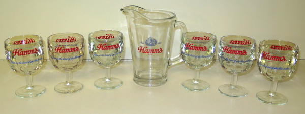 all heavy, thick glass, all to go, pitcher is a different logo than the glasses