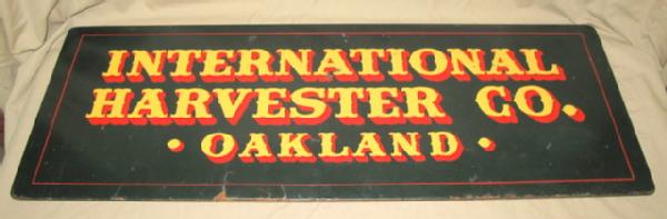 Single sided, painted on masonite sign. 33"x12", has some wear and a crack by the "O" in Oakland, came from a man who's uncle worked at IH of Oakland. Professionally made old sign, very unique