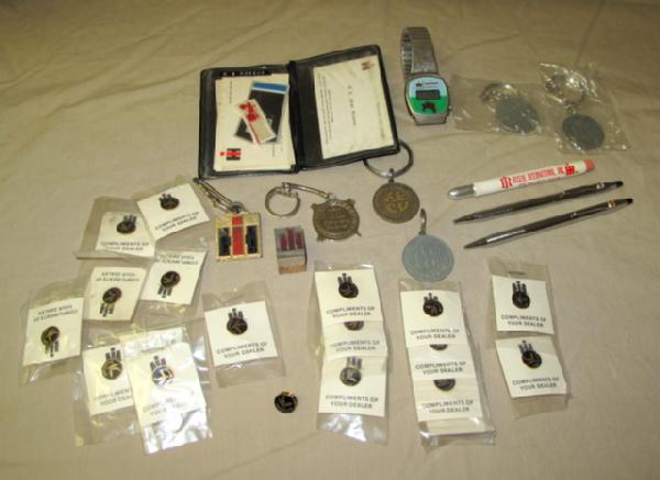 includes several of the AG pins new on the card, 2 nice ball-point pens, and more, all to go for one bid
