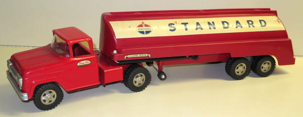 Steel cab is 85% or better, trailer is nice original, original decals, no cracks in the plastic, rates 85% or better