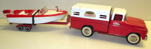 Truck is 85-90% condition, Scott-Atwater style motor is original, but missing the prop, Clipper boat is original with a replaced flag, trailer is good original, sells as a set