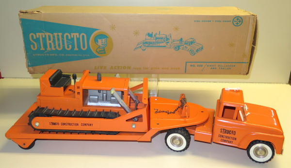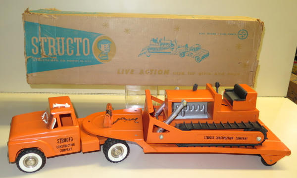 neat set we haven't sold before, toys are all about 90% or better, bulldozer is near mint, has the little plastic pieces too; Box is complete, but has some damage and wear, pretty neat set