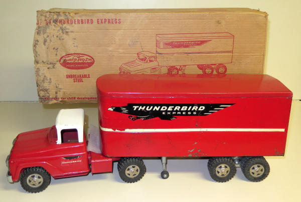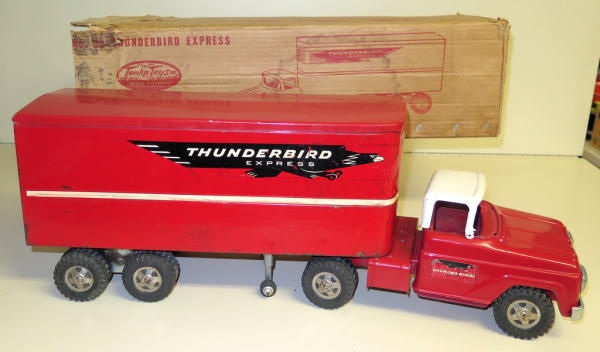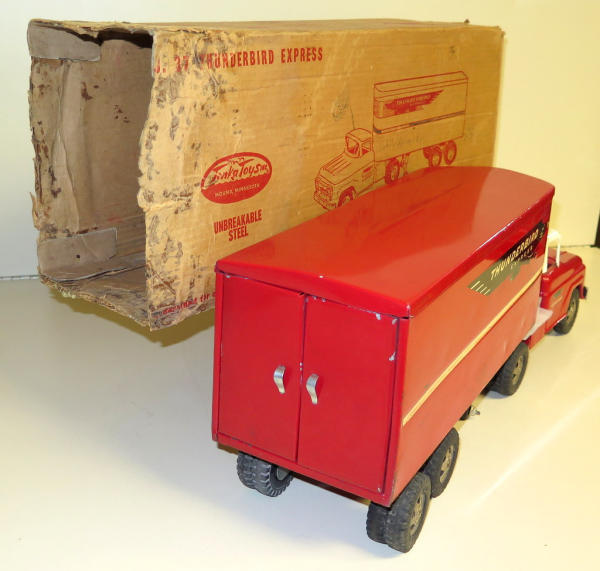 Cab has been repainted with original decals salvaged, Trailer top has been repainted, rest is original, box is missing all the flaps on one end and has heavy staining
